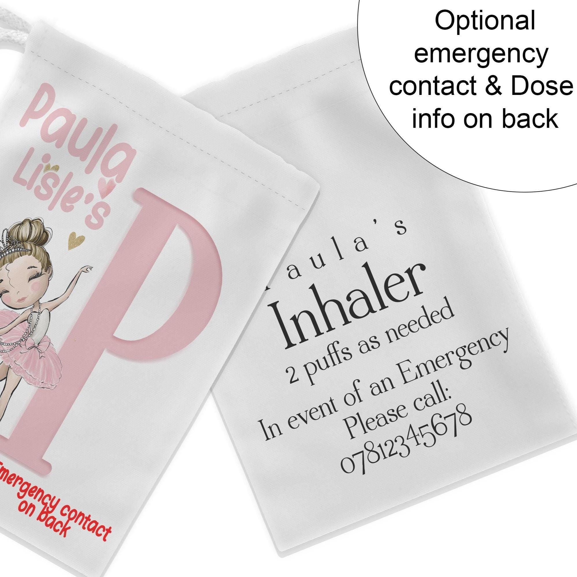Personalised Ballerina Asthma Inhaler Bag: Medical Alert, Emergency Contact, Travel accessory for kids