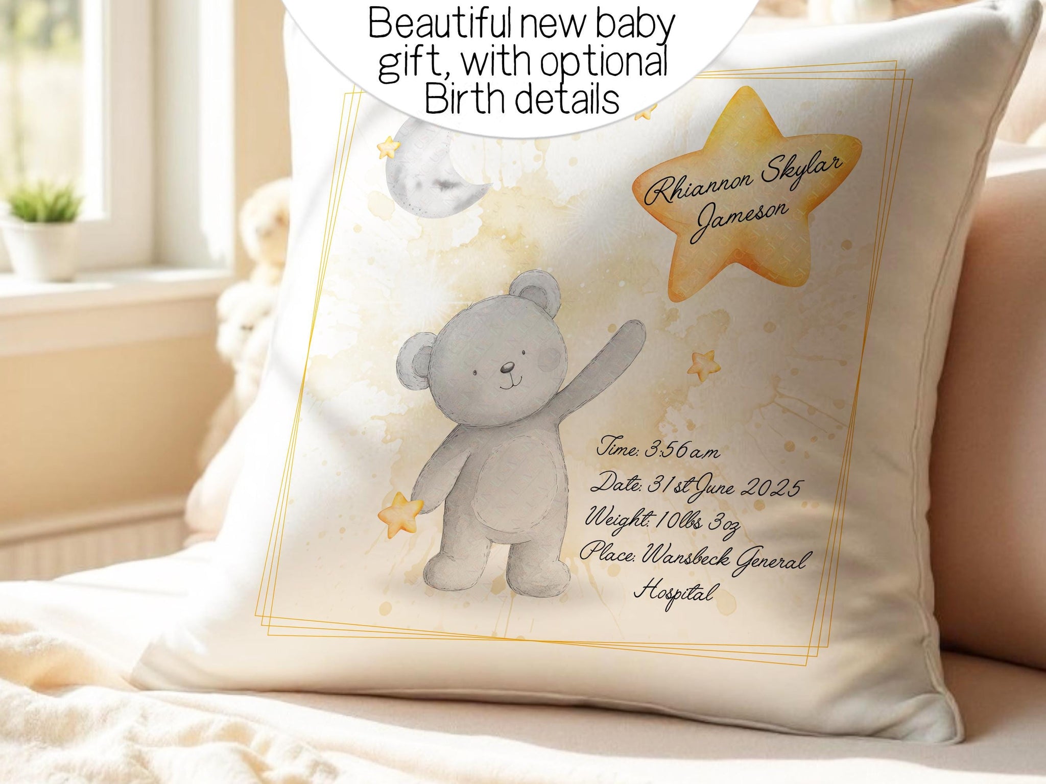 Personalised New baby Cushion – Custom made for Christenings Baptism & Special Gifts for new parents and grandparents.